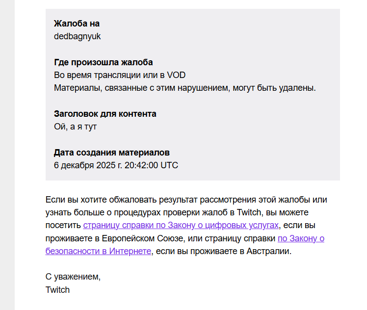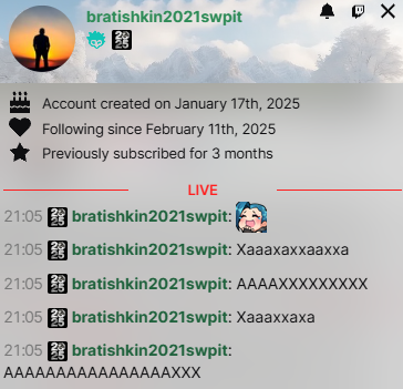 >>25744746 Сутки с позапрошлой ночи репортили и твич наконец то обратил внимание. Говнина больше не может подрубать или ему дадут пермач, нужно отсидеть положенный срок