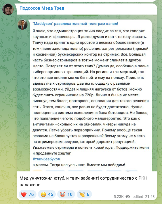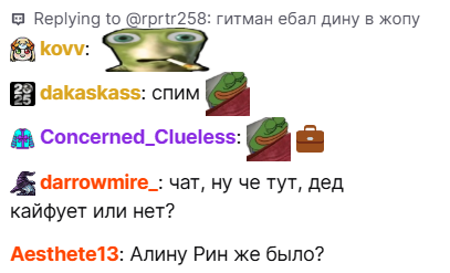 Я может чего-то не понимаю, но почему сасавот не в бане? У него в дискорде сидит на каждом стриме стример хелин, который забанен пермачом за подкаты к несовершеннолетним. Но он просто врубил войсчейнджер и каждый стрим присутствует у сасавота В былые времена за отражение забаненного в зеркале банили, а теперь всем похуй