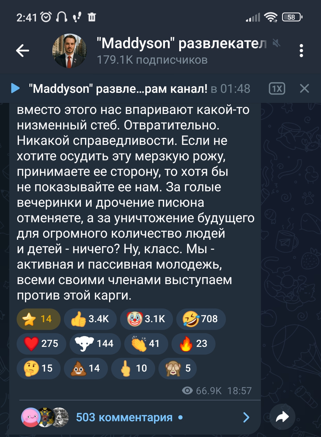 Здесь буки устроили псиоп что некий обрыган с 9 классами образования имеет такую же аудиторию. Прыгает по комнате, орет нечленораздельную хуйню. Это в целом все.