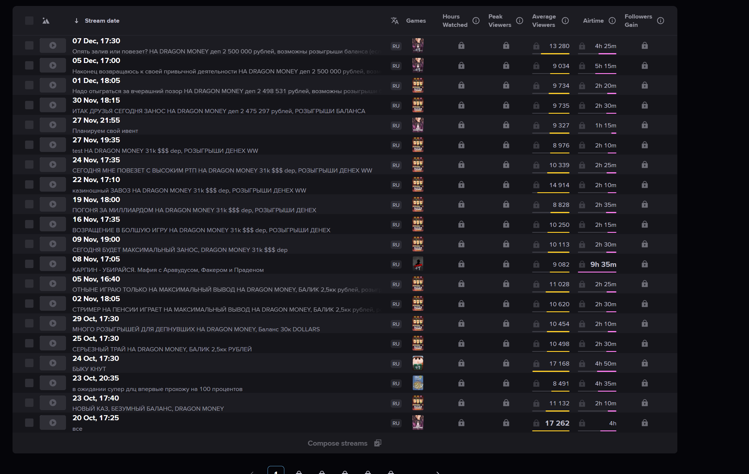 Стата стримера у которого на канале был Дональд Трамп и xQc. (ласт скрин - твич)