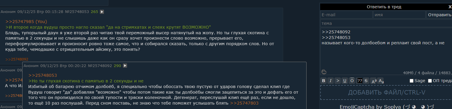 Тред затих и я решил чекнуть не совпадение ли это и проверил активность в скотоблоке по соседству, немного угорел с того что кто-то не выкупил простой сарказм, даже не слойку.