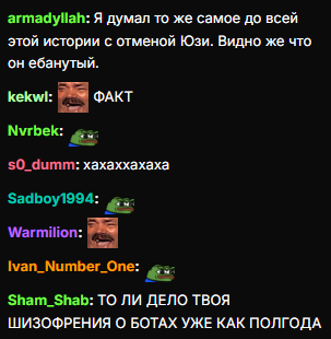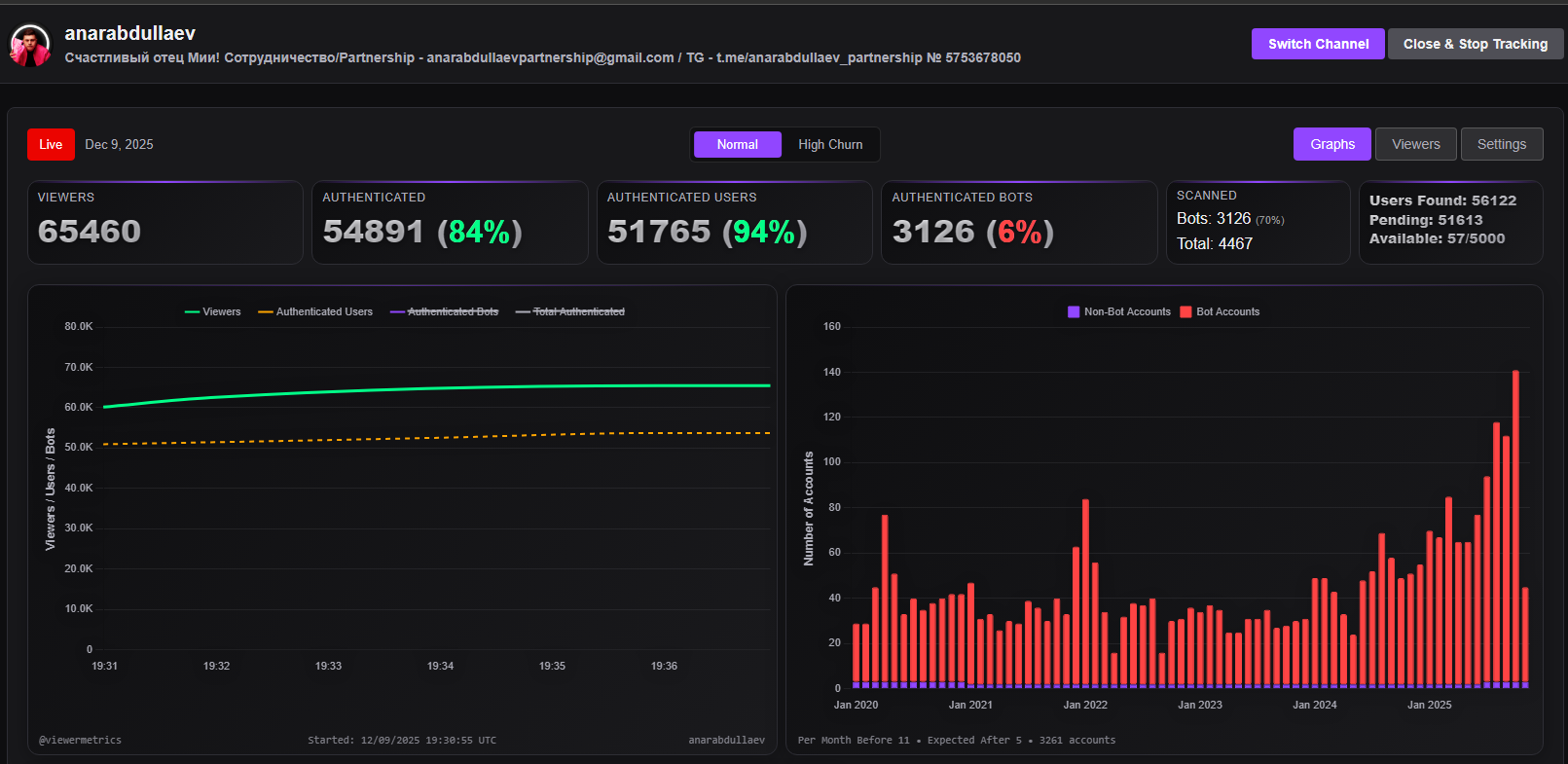 Все надоело чмудуша мониторить. Накрутка у него динамическая и зависит от количества живых зрилов. Это работает идеально, в чате есть активность, а то что там разбавлено 700 ботов не роляет иначе говоря НЕ ДОКАЖИТЕ