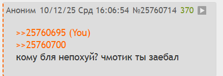 >>25760809 Похуй на орущую мразь, ты осокрбил меня назвав чемоданом что с этим будем делать? Проси прощения!! >>25760840 Да понятно что вилка = чецва. Но сегодня один завтра другой похуй.