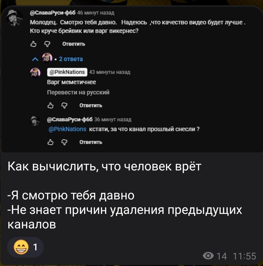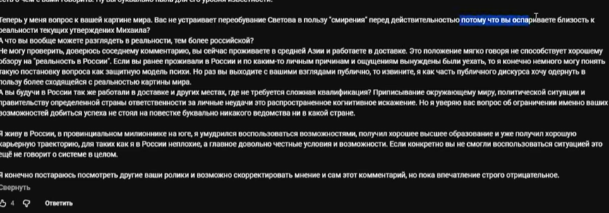 >Вот смотри, берём хронологически последовательно события. Ты начинаешь делать деконструкцию, а только после тебе кидают паблик, где ты уже пытаешься примазаться и доить их для своих роликов. Не они пришли тебя просить помощи, а наоборот ты на них наткнулся. А потому о какой протянутой руке ты говоришь? В очередной раз взял, выдумал для себя ситуацию, а после как обычно сгорел с того, что это оказалось не так.