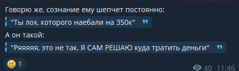 Ну и, кстати, спустя некоторое время как я и думал, ты просто решил активно пиздеть. Какое же животное... И ведь хватает наглости требовать с людей деньги