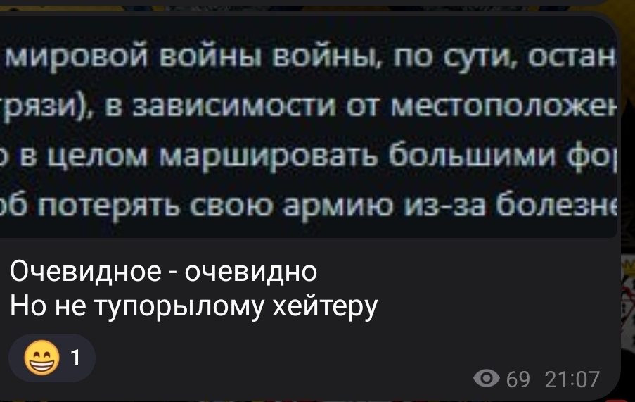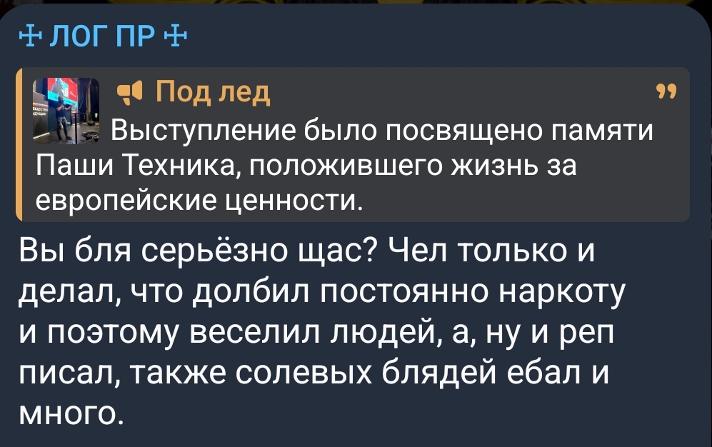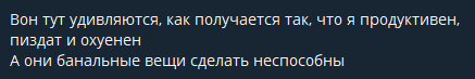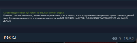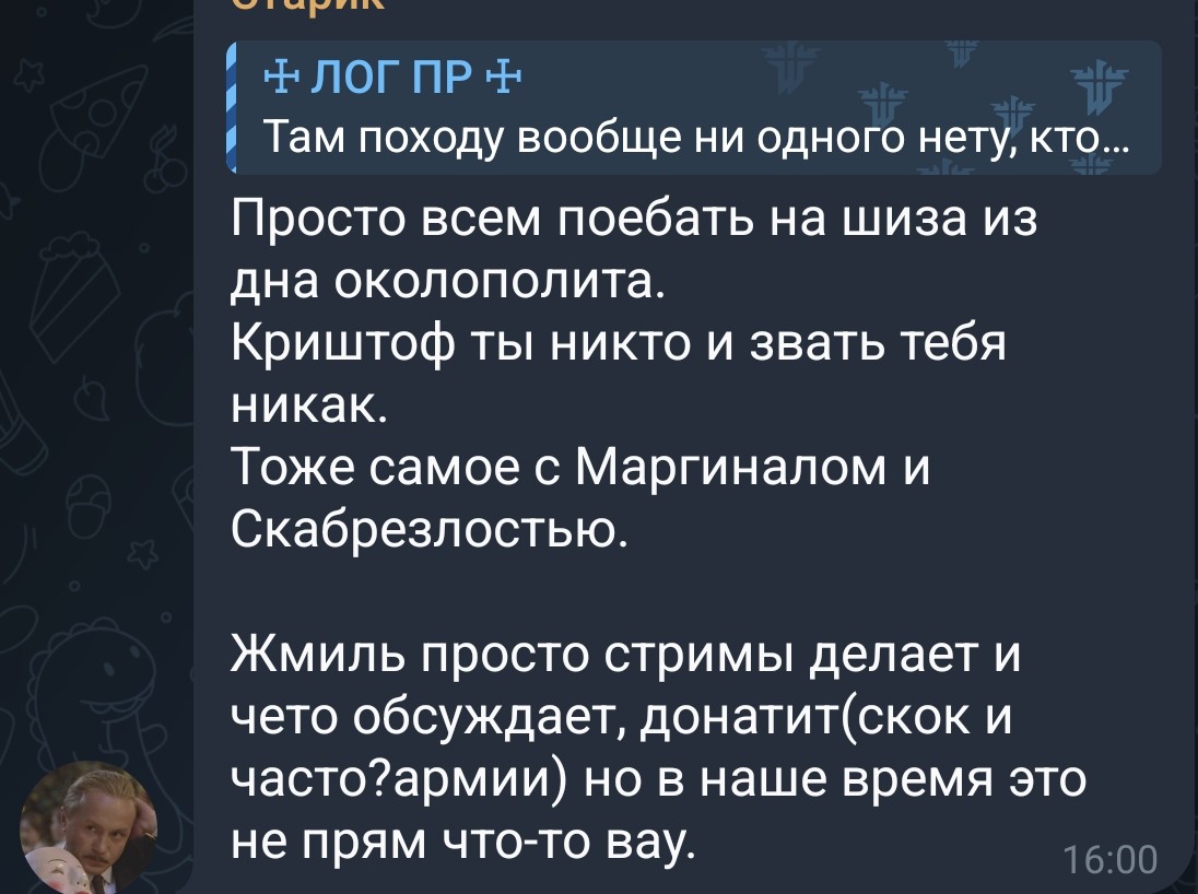 Чо там нового? Манал читать ТГ, несмотрибельно, оформление как стенгазета в классе коррекции. Как понимаю пациент совсем преисполнился и просто негативит и хамит