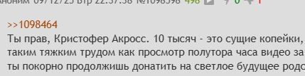 Акросс, есть встречное предложение. Сколько там выкуп этого видоса? 20к? Вот пришли мне 20к, выбери тему, я тебе сделаю 1ч видос по ней. Естестественно тема, в которой я разбираюсь
