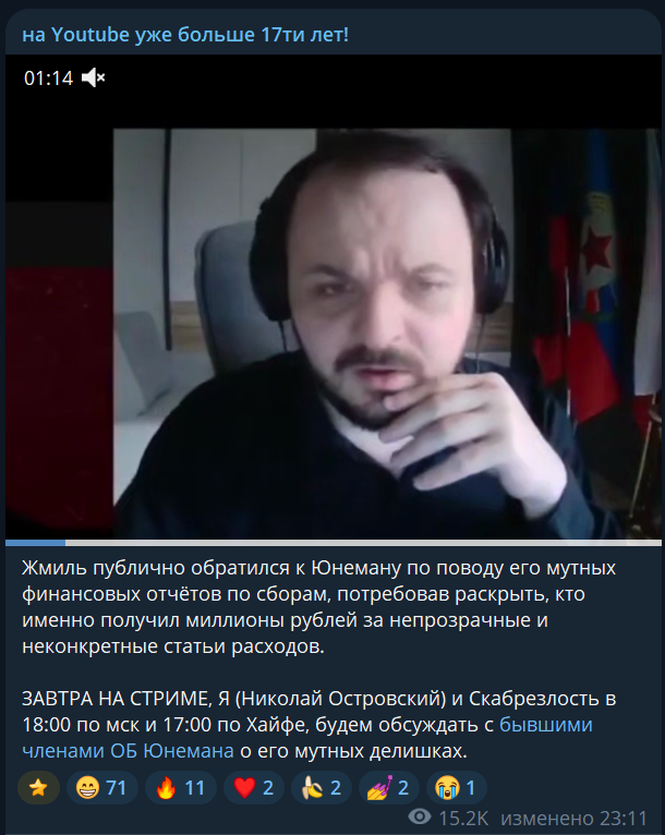 У Юнемана 0 реакции на это всё. Вот когда он высрет пост хотя бы, вот тогда - это вин До этого момента - всё хуета. А то что людей наебали в очередной раз со срочносборами, ну так это не удивляет меня. Я итак это понимал ещё с самого начала СВО