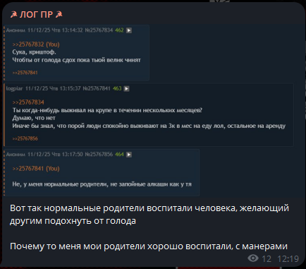 >>25709501 >травля скабра >дианон родителей, сестры, места учебы, чаттерсов, угроза уголовкой и грузинскими националистами >травля криштофа >назвали идиотом и не дали ссылку на споснор.ру листвы