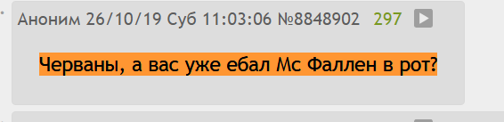 >>25763143 Тред катил не я, но перекатчик молодец. Не понимаю что тебе, любителю копро, в сущности не нравится. Хотя может быть ты подвальный яйцеглот Андрюшка, которого изнутри пожирает неутолимый ресентимент (ваше любимое словечко, кста) к Вовику, тогда конечно всё понятно. Привет, жирный, привет тебе говорю от черванов.