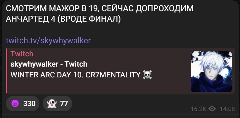 Молодец, что смотришь каждый его стрим как послушная собачонка