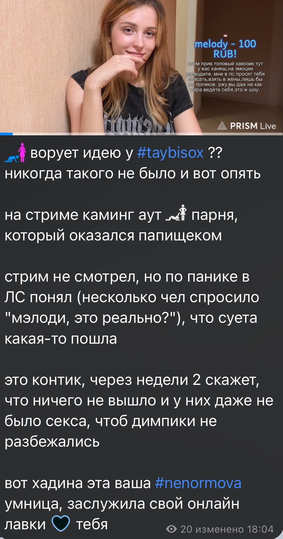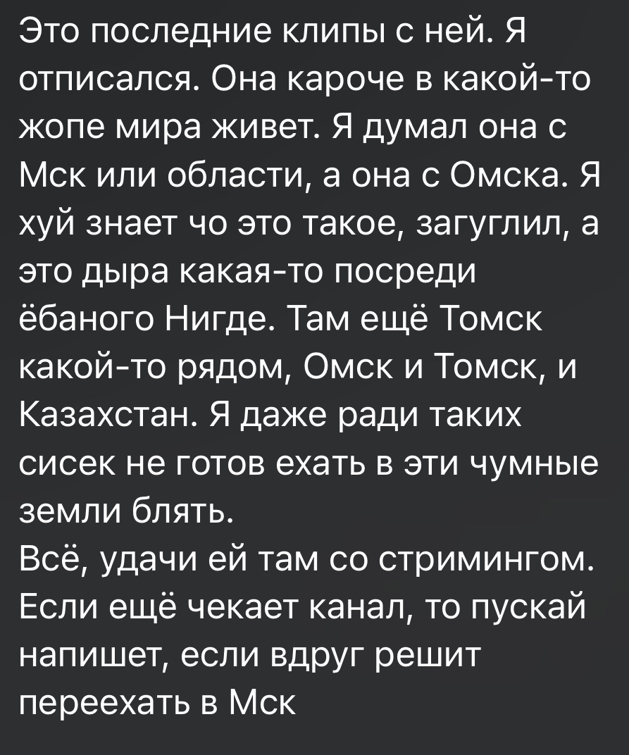 Поехала головой окончательно, потеряли девку. Окуклилась везде, алкаш ей звонил на стриме, у нее автоответчик с ассистентом.