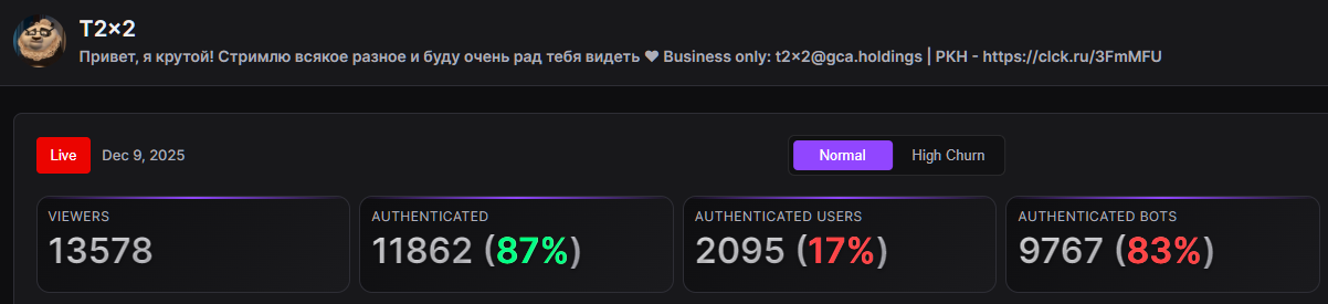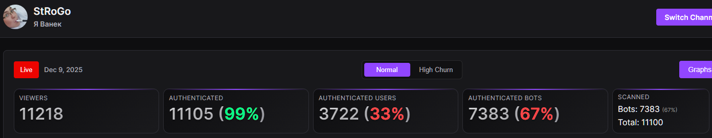 И где оно показывает отсутствие, даун? У братишкина 60% ботов, у всяких подсосов эвелонов тоже по 50+