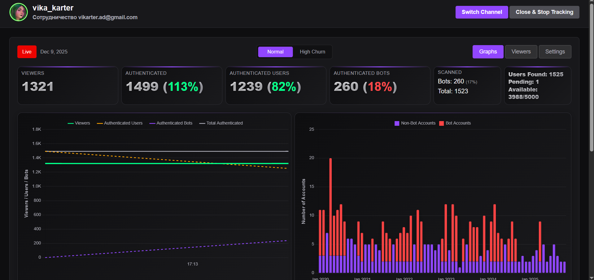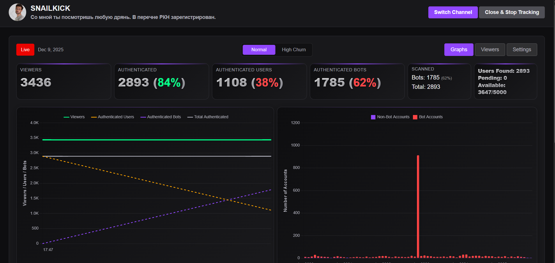 Да у тебя шиза просто. По активности чата цифры плюс минус бьются с этим расширением