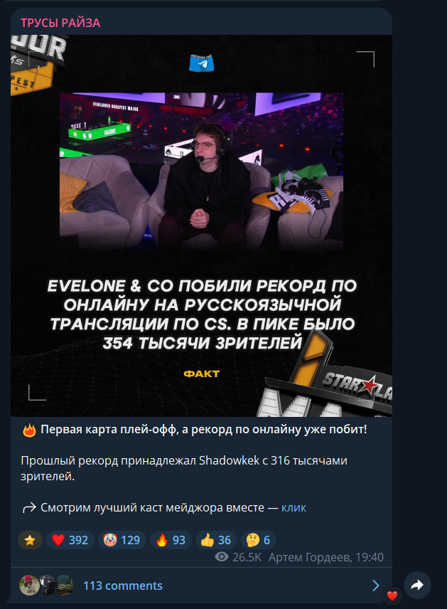 Щас в категории КС на твиче всего 600к онлайна... КС умирает, были времена когда на мажоре в 2021 когда нави играли было 2 миллиона зрителей в категории