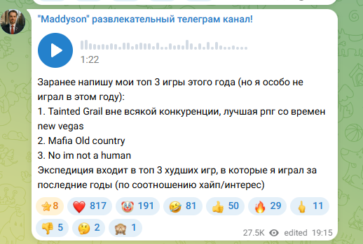 «Я понял, что нет ничего лучше, чем Родина. Я съездил сейчас на Урал и теперь я хочу еще куда-нибудь съездить. Я тут узнал, что среди моих знакомых планируется поездка на Донбасс, но я пока еще немножечко не готов. Я думаю об этом, но не факт, что это будет интересный и радостный трэвел-блог. Наверное, пока я воздержусь, но может быть в июле. Посмотрим», – объявил Мэддисон в рамках стрима на Твиче.