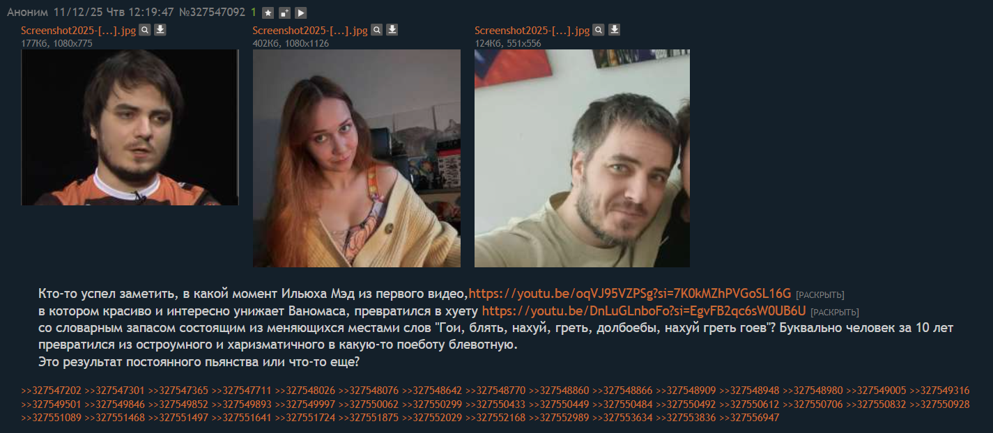 >>25771288 Чел, это надо быть полным ничтожеством-трусонюхом, биомусором без личной жизни, чтобы настолько вдаваться в подробности личной жизни каких-то там стримеров и тем более их телок