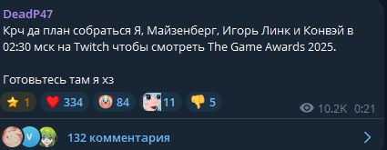 А вот смотреть собираюсь в первую очередь из-за анонсов. 😱 Во-первых это последняя ночь хопиума по Half-Life 3. Тем более Габен лично приплыл на церемонию чтоб объявить там какого-то победителя. И хоть шансы не велики, но не равны нулю, что после объявления победителя нам покажут трейлер. 💉😡