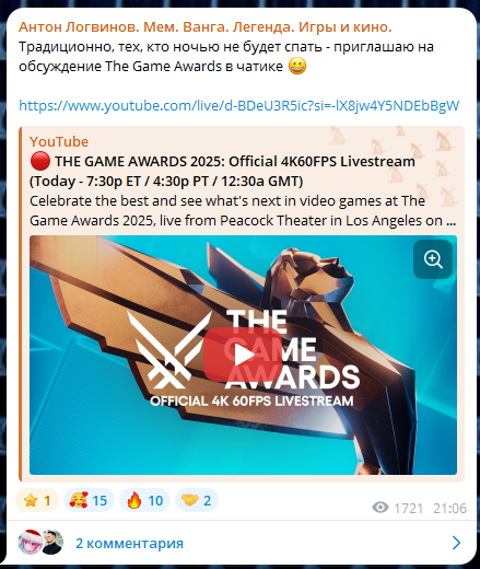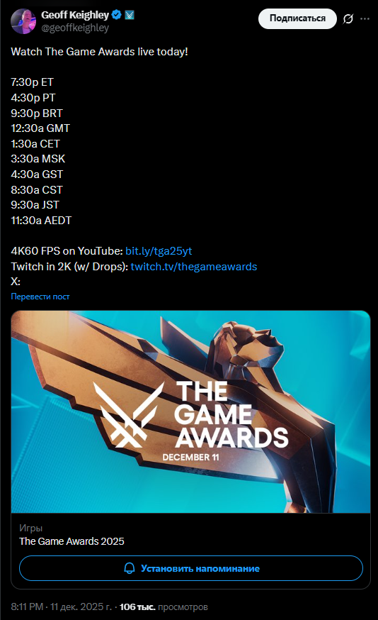 В остальном легендарный игровой год, номинанты реально один круче другого, смотреть явно будет интересно.