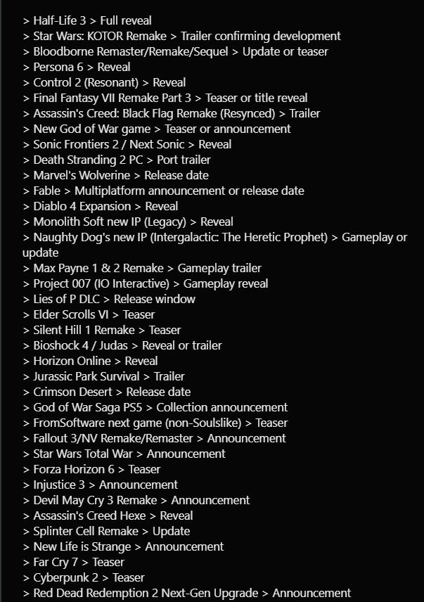1) Найти жену + скрафтить бэйбика 2) Поиграть в GTA 6 3) Досмотреть «Секс в большом городе» 4) Выиграть чемпионат мира по бодибилдингу 5) Сделать так, чтобы весь мир использовал мои девайсы 6) Провести премию SLAY 2026 без штанов 7) Сделать бои стримеров на стриме 8) Познакомить Экскайла и Мистер Биста 9) Больше не общаться с Дмитрием Ликсом 10) Разыграть Кентукки среди подписчиков ТГ 11) Разыграть подписчиков среди Кентукки ТГ