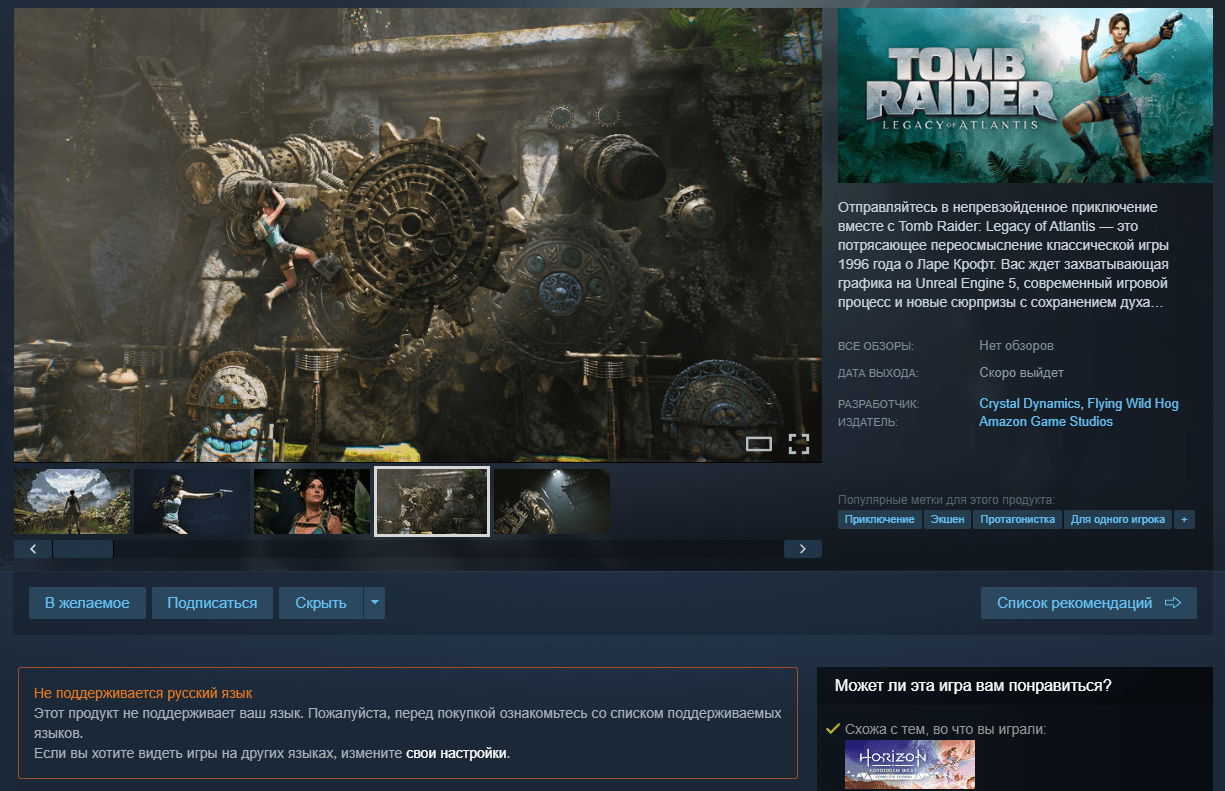 >>25775866 У Ларки издательство Амазон, они вообще в русский никогда не хотели. Финские пидоры тут все понятно. Гонки делают какие-то ноунеймы без единой игры в стиме, думаю качество соответствующее будет. А вот япошки понимают что мы в их кал играть не будем, даже решили не заморачиваться.
