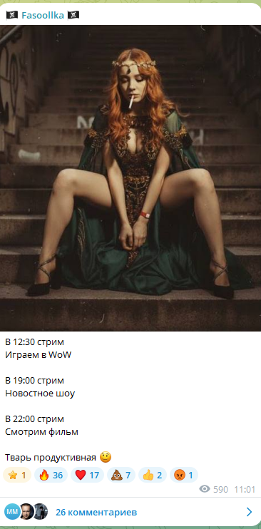 17:00 чуханка даже не удосужилась написать в тг что в итоге по стриму сегодня. За последний месяц у нее прям такое чсв стало что ей вообще на аудитоhию похуй стало.