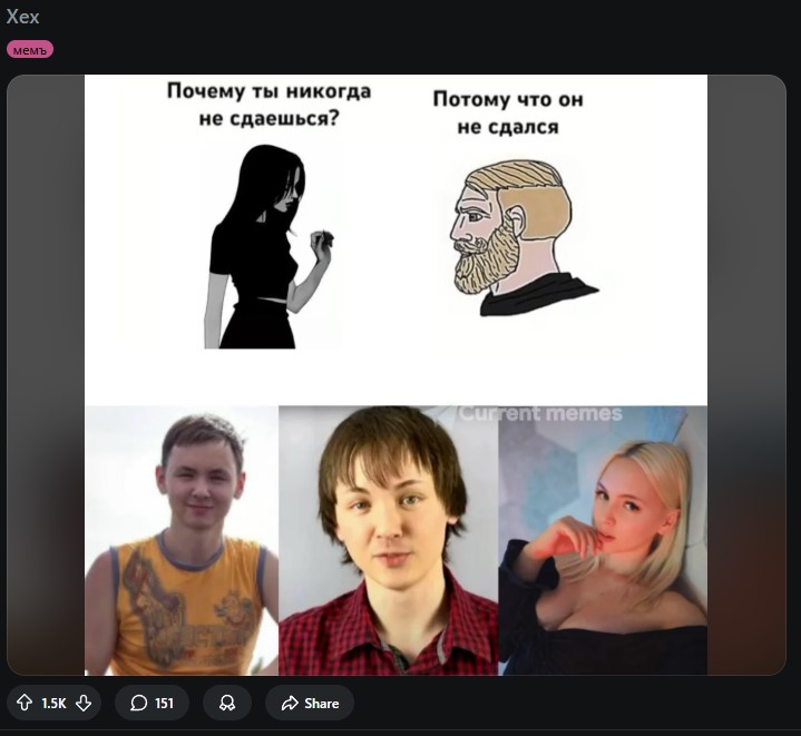 Тред перекатывал знаток тонкого юмора: на превьюшке треда красивая ИИ девушка, а заходишь в тред и тут тебя встречает баба срака Радиковна. Два чая этому мастеру тонкого троллинга.