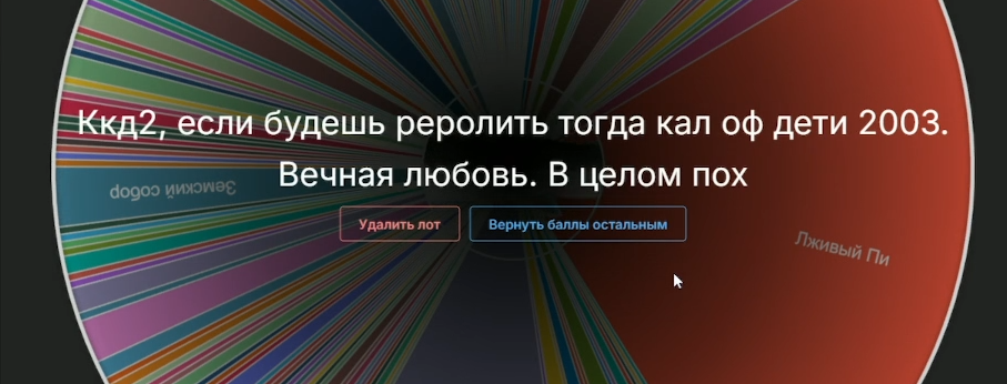 Кто вообще до сих пор думает, что увеличение своего сектора на колесе увеличивает шанс выигрыша? Вы ебанутые? Если хочется что-то заказать закиньте минимум, там нахуй ваши завозы по 100к не влияют ни на что