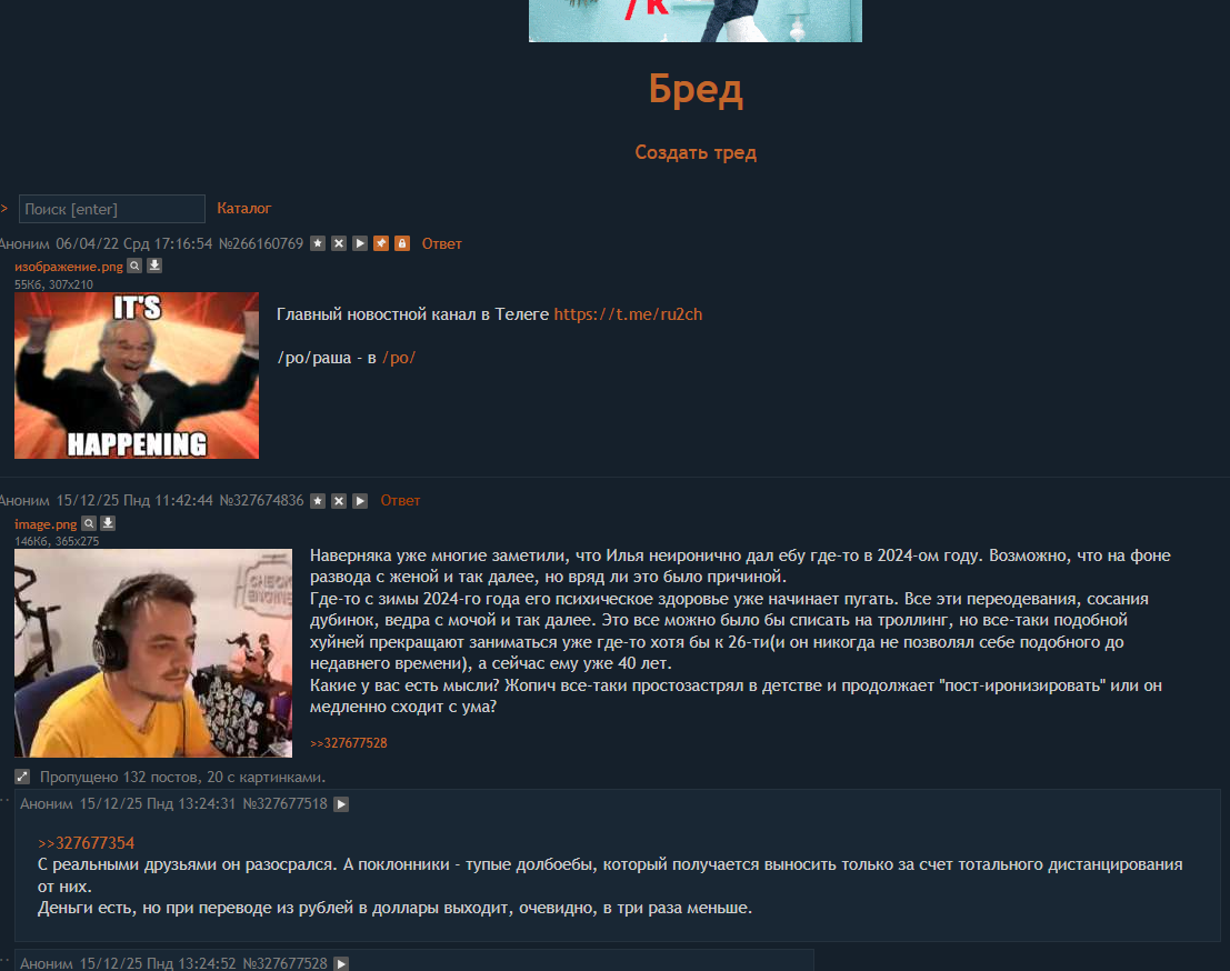 >>25799963 От твоего гринтекста реальность не изменится, у Илюхи есть конфа троллей в дискорде среди которых тот самый анатолий курпатов которые сливают по 60к на мемалертсы с вихорьковым, по 100к на петьку и по 200к на вуконг.