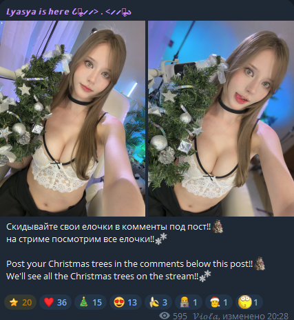 Виолетта Витальевна Крючкова или Lyasyaa (Ляся), 25 лет (20.07.2000), живет в Москве, переехала из Пятигорска, родилась в Кисловодске. Рост 172 см. Основу аудитории составляют иностранцы, русских около 30%. Виола активно использует многие фишки корейских стримерш, в том числе и увеличение груди. Основной контент - Джаст чаттинг (где-то 60 процентов на ангельском и 40 на русском), сексапильные танцульки и редкие ИРЛы.