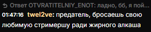 Последний стрим показал что донаты у неё ахуенно просели, особенно завершающая речь на стриме давящая на жалость, женский шантаж. Ряя пойду работать, не буду стримить и всё в таком духе. Речь подавлена, по итогу заныла как оффнула. Меньше выёбываться надо и стараться быть человеком, а не скотиной. Понимаю что ты селючка, характер у тебя говнистый, очко теранула лопухом и пошла, понятно что тебе некого уважать, потому что даже себя не уважаешь.