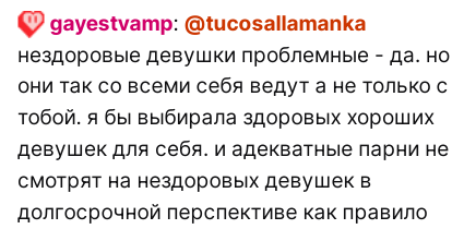 А почему ты тогда так дерзко сыплешь утверждениями типа: просто девушка играет в игры, смотрит фильмы; вы пиксели в её жизни; нафантазировали и т.д.? Какая-то нездоровая предвзятость для "исследователя".