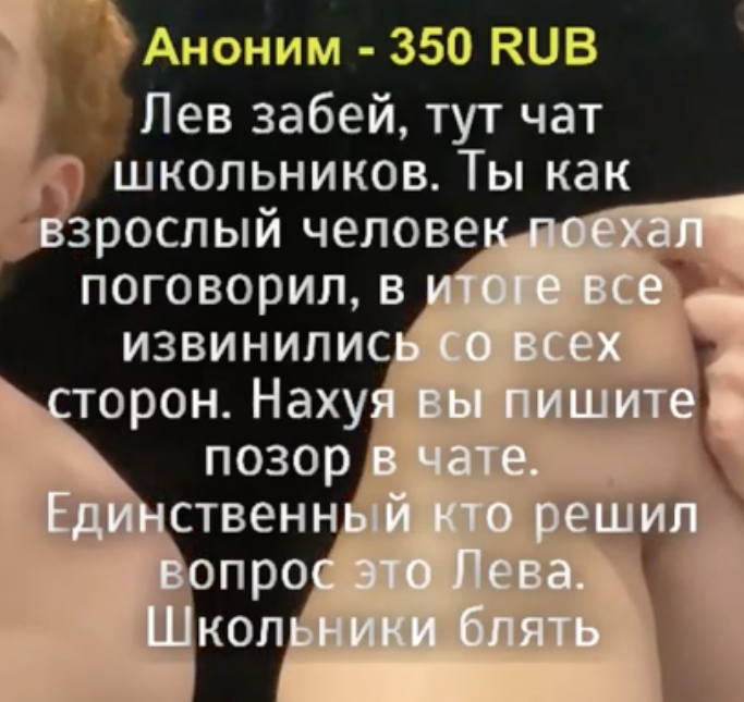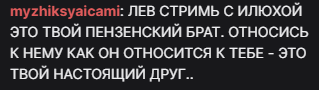 Лору как школьник почти получил пизды за свой пиздешь в интернете. Лев не друг ему и они общаются только с Бали. Ну так какого хуя он его друг? Если он его такой пиздатый друг, то какого хуя он вчера поступил как чмо ебаное и потом еще чтото там хихикал с этого