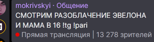 скоро стинт видос выпустит на накрутчикам. Но там как я понял не будет крупных подсосов эвелона, он говорил больше всего ботов на стримах до 10к людей. А все эти касты на 400к по такой же логике, по которой чмодье оправдывал никса. Типа на разных сайтах в плеере его стрим и поэтому тысяч 200 оттуда только приходит