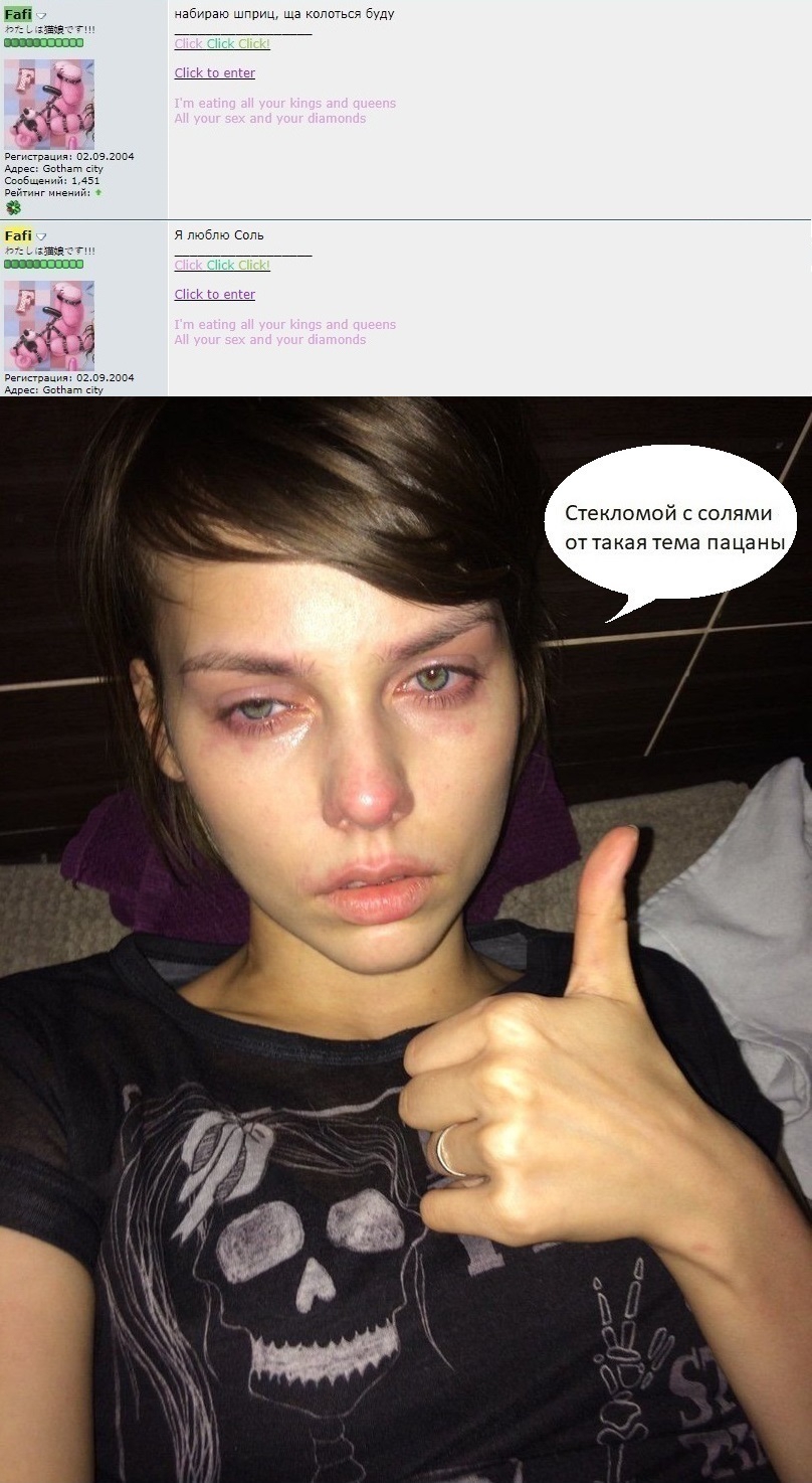 да. есть ее сообщения с форумов, где она на отходняках жалуется чтобы другие не юзали нар котики, щас вроде завязала, но бывших наркоманов не бывает, лично я часто вижу как она с широкими зрачками и светом в лицо палится