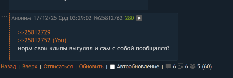 >>25812741 ему приносят его пост, он бежит перепощивать и радоваться, ему говорят, что это он и срет своим же постом в очередной раз, на что он агрится и говорит НЕТ ТЫ блядь ебать ребенок боже