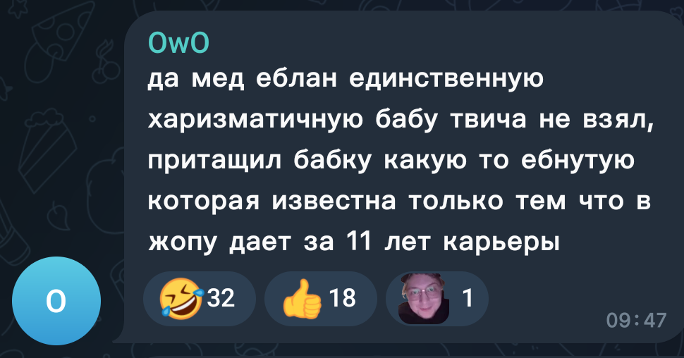 Вы такое пропустили. Нормисы, включая нормис старуху и говнормеры сидели в тг канале подсосов мэда и обсуждали кого там надо было брать, кого не надо. и насрали 500 постов