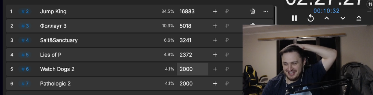 у флешки донатов 5к набирается, ему его зрители (хз кто это, возможно его телка) донатят на нфс которые он и так проходить собирался, там сразу +100 очков за каждую игру, мне кажется стоит кикнуть его даже щас чем ивент портить