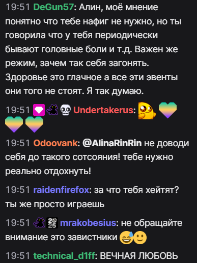 У неё он чаще пишет, чем она у него. Танки и ВОВ не очень для чата. Ну и я ещё раз повторю, что у Дины Блин и Кати он сидит чаще и наоборот. Когда подводили итоги года твича, Дина тильтовала в чате от того, что он в её топе есть, а вместо неё у него Кати в любимых стримерах