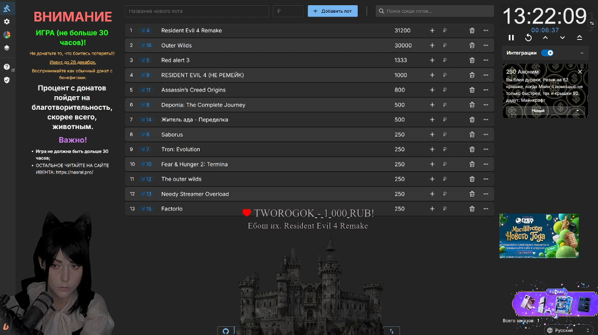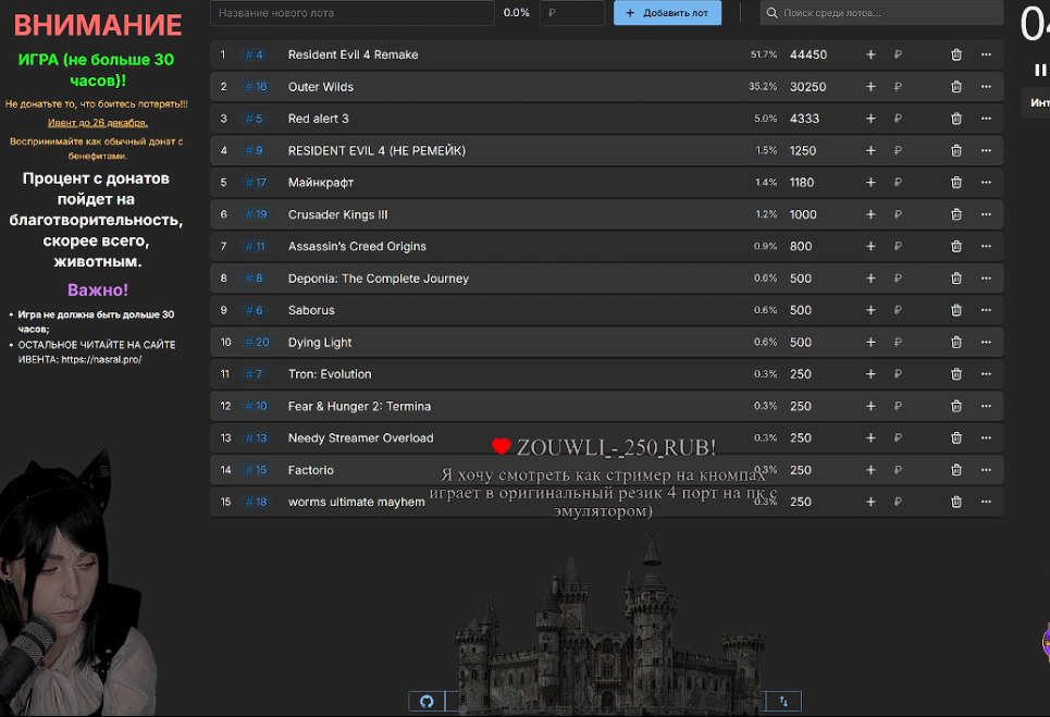 Я седня чуть не расплакался когда смотрел аукцион Аравудуса нах. Он сказал, что было бы круто если бы ему задонатили на Скайрим, типа по быстрому бы пробежал. В итоге на Скайрим ему закинули всего 100 рублей. Плюс пришел чел с ником "Со стрима Мэла" и ещё 1000 закинул (Мэл в этот момент смотрел стрим Женька на своём стриме)