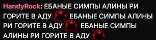 Тупа специальный чел китает тестовый донаты и все - ну нахуй физически в РФ не найдется столько дегенератов, готовых кидать жопичу 50к+, чтобы эта свинота тебя наебала, дропнула еще и дауном назвала - он мог такое сделать раз-два в жирные времена, но после этого реально донатить ему перестали. Другие типа Алины такой же хуйней занимаются. Там реальных денег не больше чем у флешки.