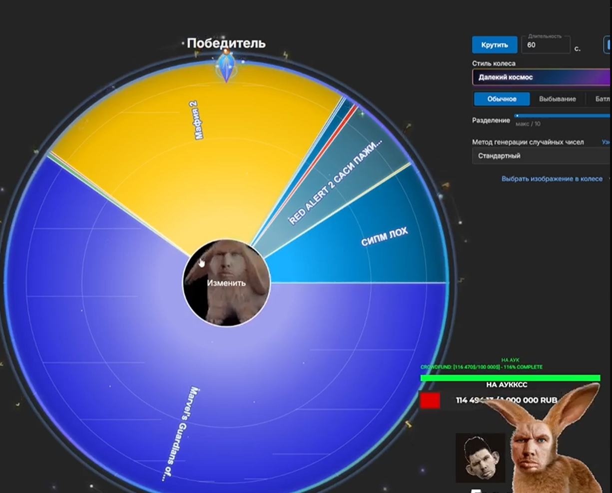 Короче, чекайте. Есть чел, который занимается наёбом рандомайзеров, продаёт игрушку, которая даёт тебе любой желаемый результат на всех рандомайзерах, включая колесо аука. При этом всё делается на оригинальных сайтах.