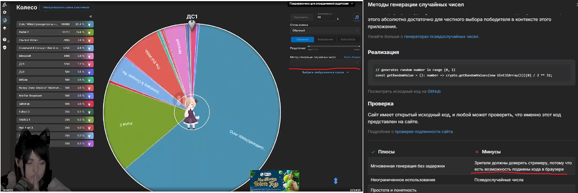 Флешка вебкой закрывает ту часть сайта, так что как у него я хз. Но буквально у всех остальных кроме Алинырин всё в порядке, и имеется надпись на самой важной строке, которая показывает метод генерации рандома.