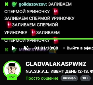 > ласка зетанутый дурачок какой-то я факера к себе на ивент позову > спасибо илюха мэд, а теперь целуй залупу >факер ты тиво я же спас твой канал от медийной смерти и подарил онлайн в 10к >ЦЕЛУЙ ЗАЛУПУ ГЕРОЙ МИНЬЕТА