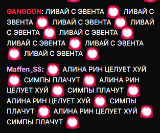 Пиздец, Алина весь аук старалась, честно играла (иногда и сутками), а по итогам коллективное мужло сосущее чмодьепорку отправило её на последнее месте. Пидарок тупо мошнил весь ивент, дропал игры, ныл, а его ещё жалеют. Хорошо, что вы сдохните девственниками и в одиночестве. Ушёл.