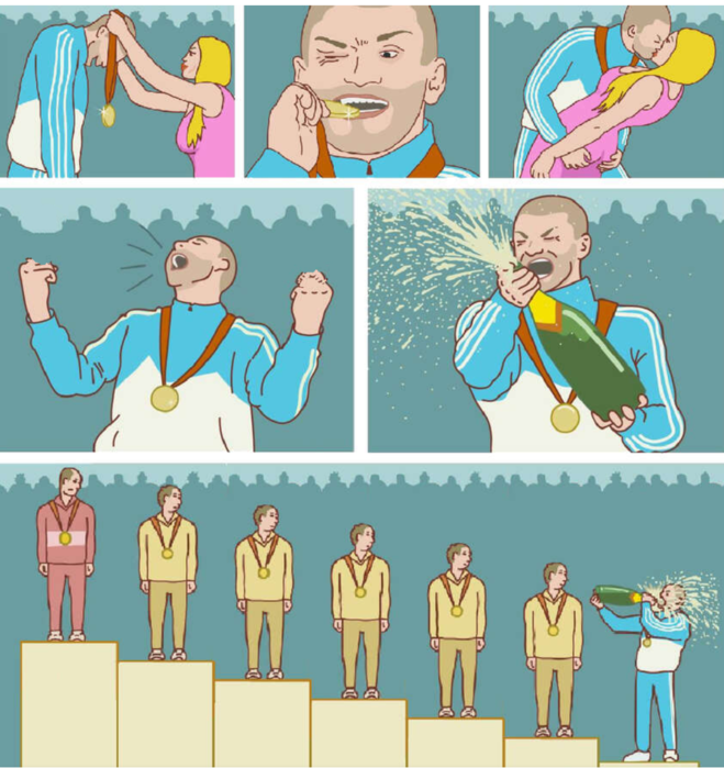 давно жизнь не раставляла всё по своим местам с такой хирургической точностью, лучше было бы если бронзовых залуп было бы две - мадьё с ней на ивенте друг друга стоят