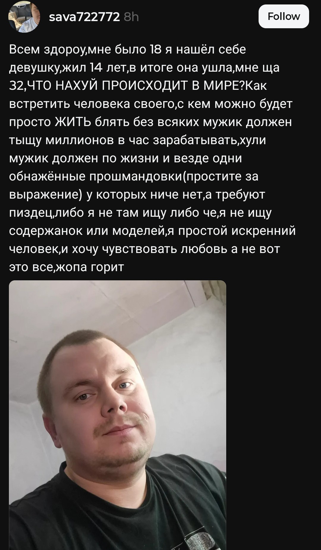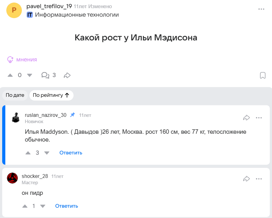 2026 год люди до сих пор не нашли бабу, не нашли работу с норм зарплатой, не стали счастливыми, они трясутся за интернет людей которые не узнают даже об их существовании и реально переживают что люди заработавшие миллионы за 12 дней, попали на какое то там место
