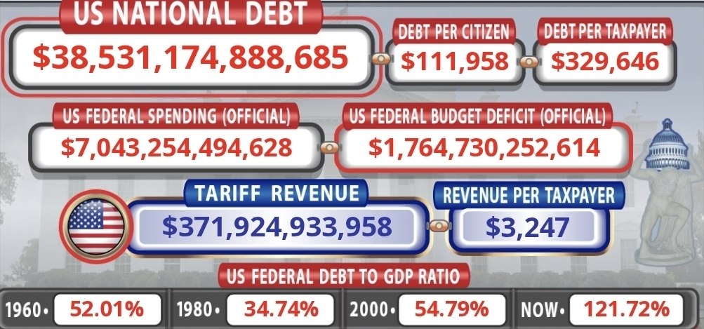 По официальным данным Минфина США на 23 декабря, государственный долг страны превышал $38,375 трлн. По неофициальным подсчётам онлайн-табло, в период рождественских праздников показатель вырос и превысил $38,5 трлн, увеличиваясь в 2025 году темпами более $75 000 в секунду.