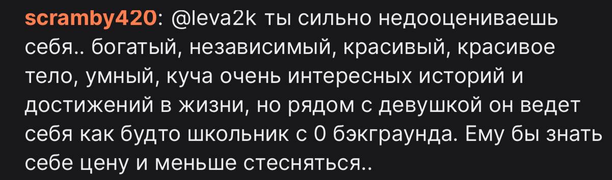 >>25875433 кстати в чатике написали, что сблева ей 100к заплатил за стрим, о чем она сама якобы сказала на своем стриме 2 дня назад. но в такой расклад событий я не оч верю