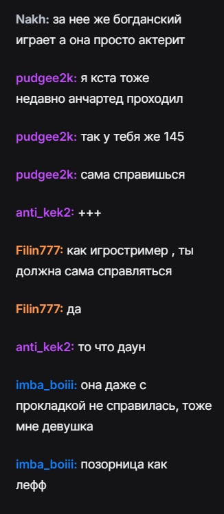 я не понимаю как такая наглая, безнравственная и аморальная хохлушка на дибубенс продолжает оскорблять людей у неё на стримах, бубнит и ведёт себя как неадекватное наглое животное и её любят и смотрят? самое интересное что она даже не бухая а кидает фразы как "вот если бы мужик ко мне подошёл так же я бы могла ему нахерачить" Это больное существо накаченное силиконом и пластикой постоянно в каком-то позитивном отзыве. Блять, вот только что она заходит в клуб бандоса и он с таким позитивом вообще ни о чём, так ещё и ранее проблемы в заварке, возникщие из за неё кстати, он сказал что порешат. Что за хуйня блять, почему такое животное столько фартит я не понимаю просто гнилой человек.